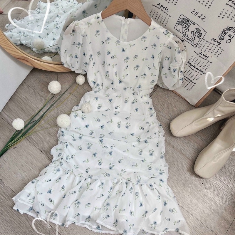 Đầm hoa nhún đuôi cá (Carol) free ship