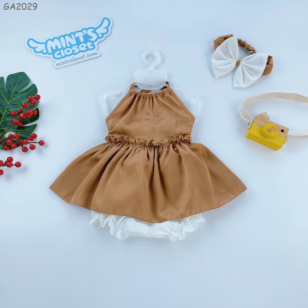 Set Yếm Lụa Phối Nơ Lưng Kèm Chip Trắng Cổ Điển Bé Gái Size 0 - 4 Tuổi MINTSCLOSET Mint's Closet - GA2037 - GA2029 free ship